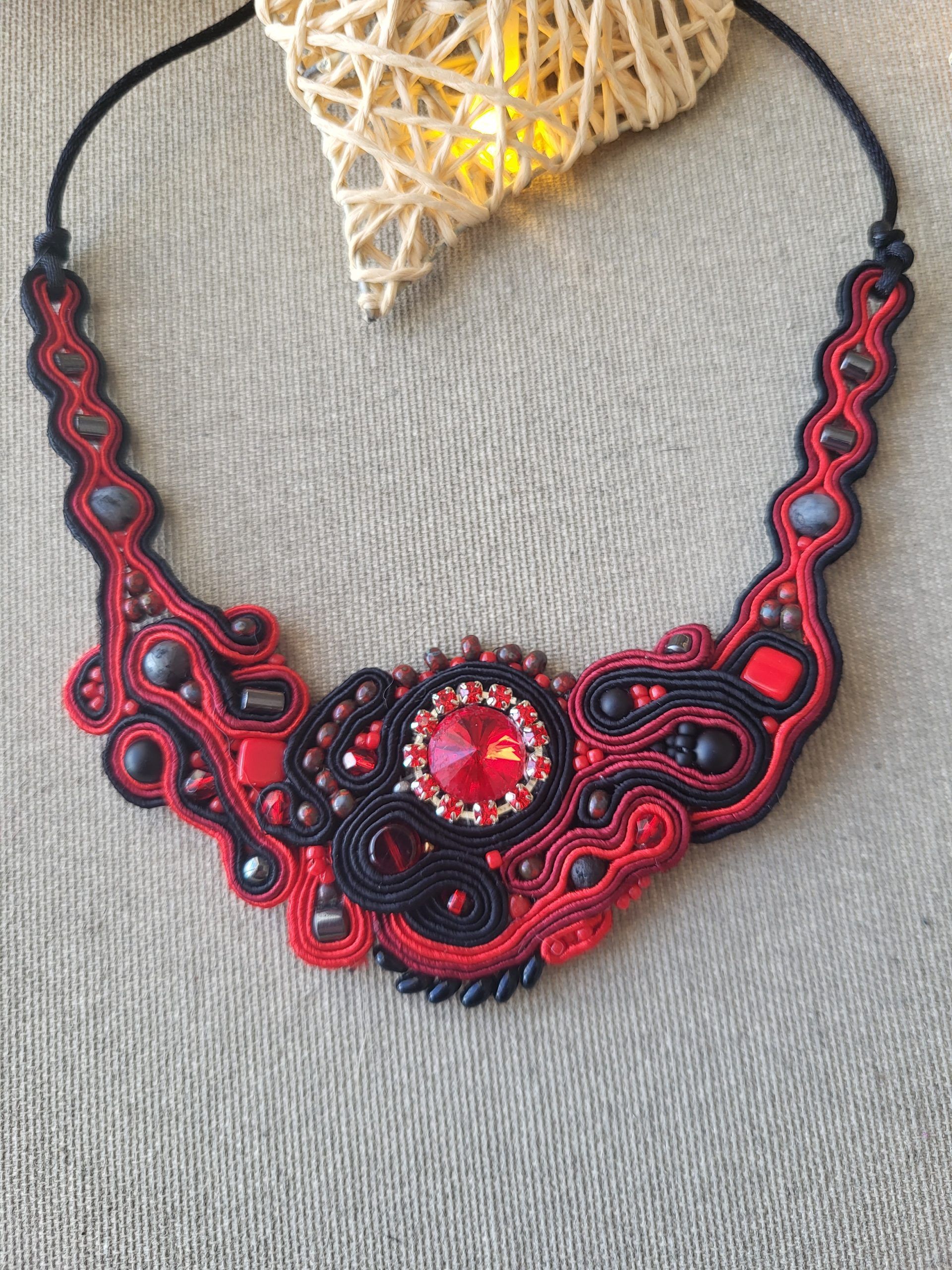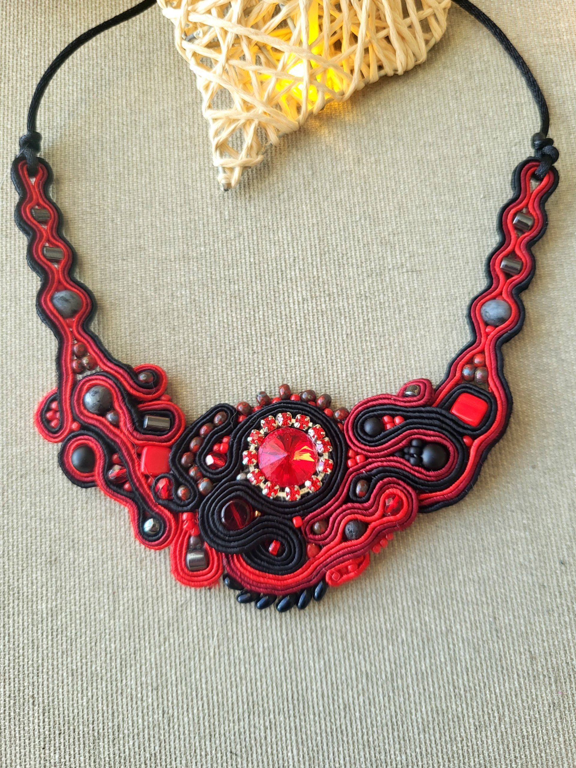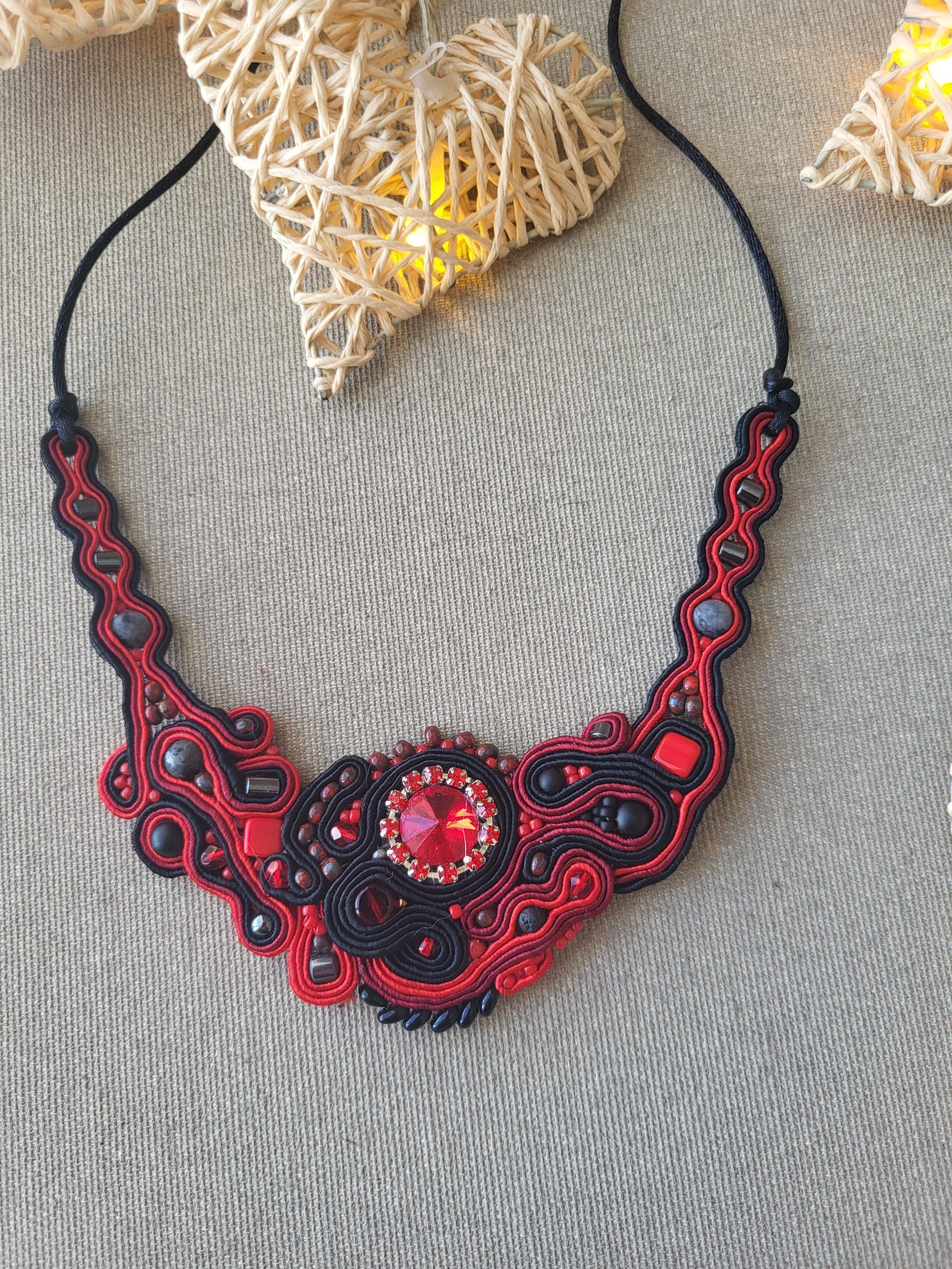 Naszyjnik, kolia wykonany techniką haftu Sutasz.
