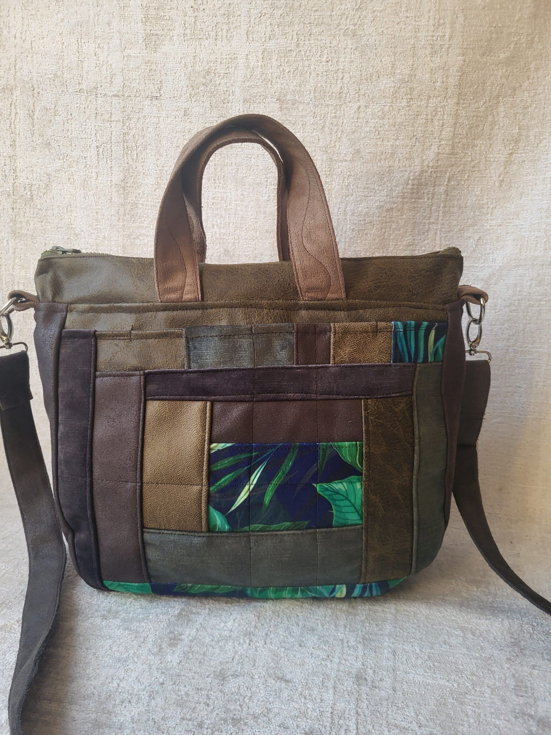 Z przodu został uszyty patchwork tworząc unikalny wzór.