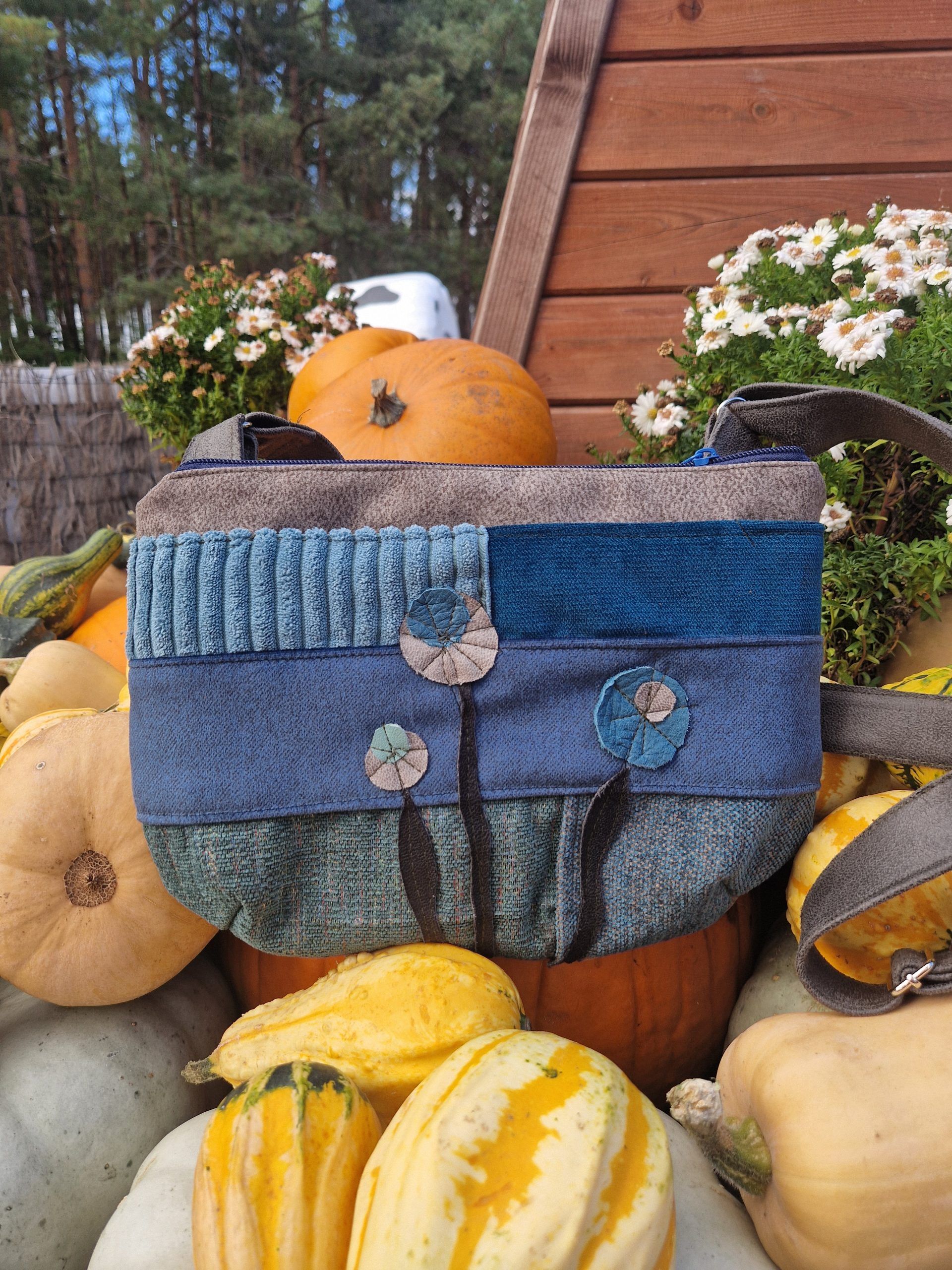 Z przodu każdej torebki wykonany jest niepowtarzalny patchwork I aplikacje, co sprawia, że każda jest oryginalna i unikatowa.