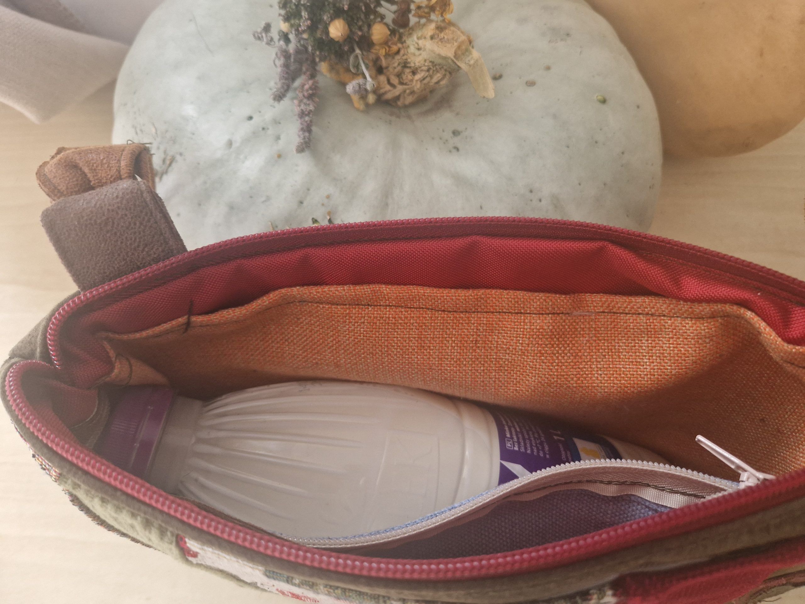 Może pomieścić: portfel, telefon, klucze, chusteczki, słuchawki a nawet butelkę mleka.
