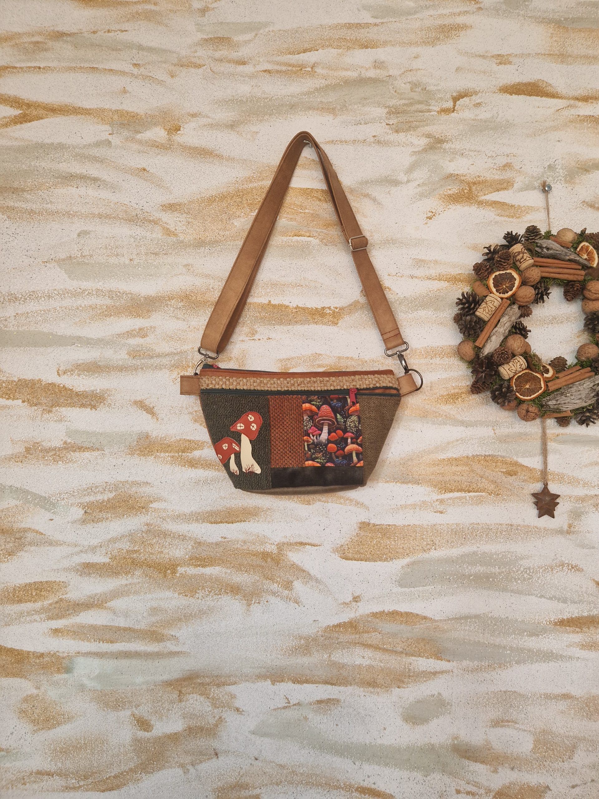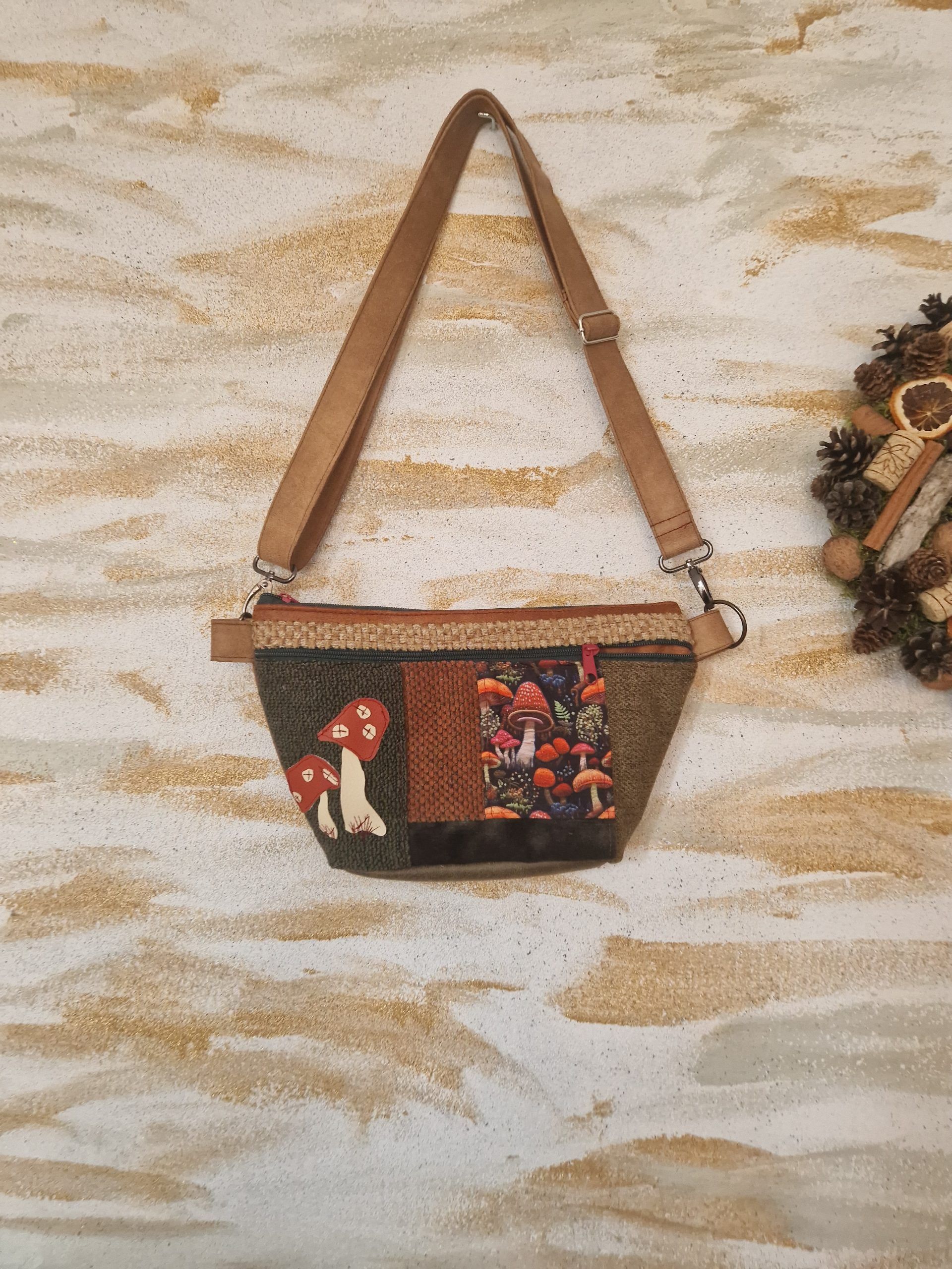 Może pomieścić: portfel, telefon, klucze, chusteczki, słuchawki.